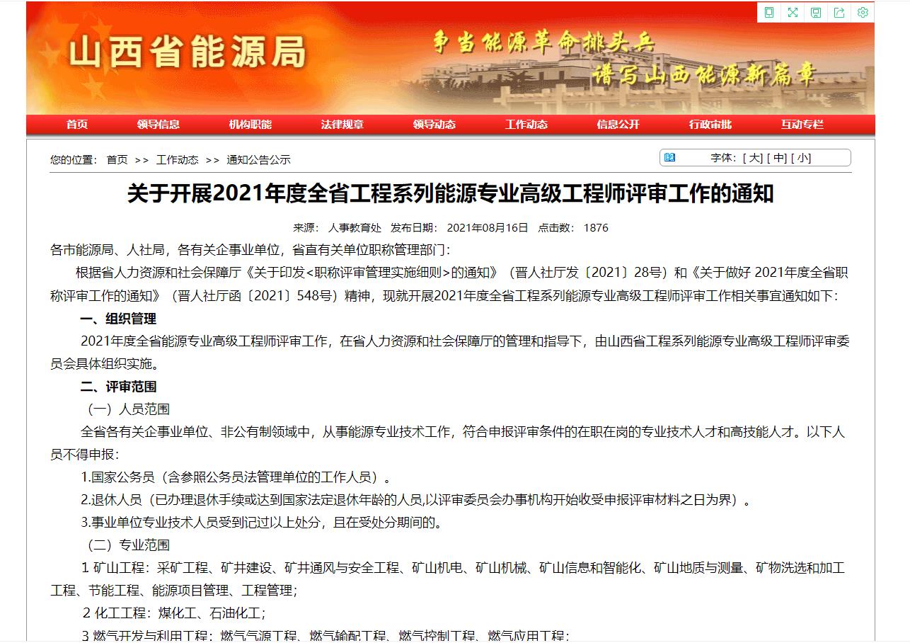 關(guān)于開展2021年度全省工程系列能源專業(yè)高級(jí)工程師評(píng)審工作的通知