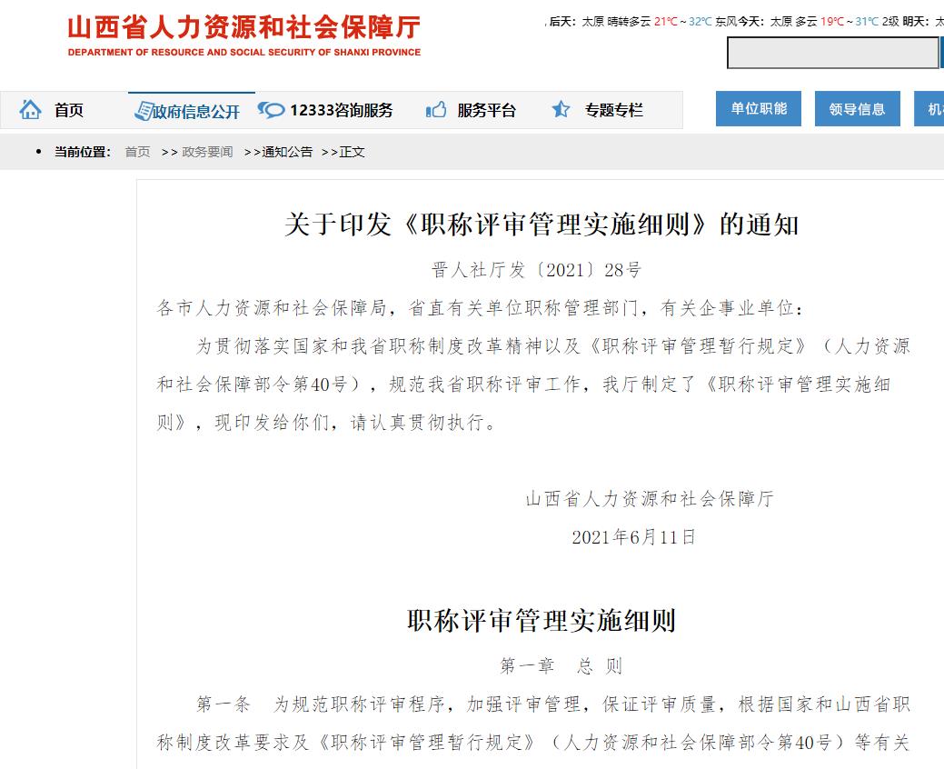 關(guān)于印發(fā)《職稱評審管理實(shí)施細(xì)則》的通知 晉人社廳發(fā)〔2021〕28號